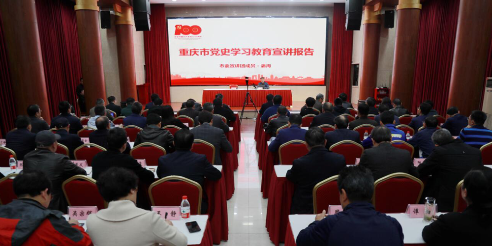 党史学习教育重庆市委宣讲团成员、公司党委副书记潘洵围绕深入学习领会习近平总书记关于党的历史的重要论述,充分认识开展党史学习教育的重大意义;认真研读党史基本著作,全面了解中国共产党百年奋斗的光辉历程和历史性贡献;深刻把握开展党史学习教育的重点;开展党史学习教育,要学懂弄通做实习近平新时代中国特色社会主义思想,增强“四个意识”、坚定“四个自信”、做到“两个维护”四个方面,对党史学习教育的目标要求、学习内容和重点任务进行系统解读。随后,公司党委书记李旭锋就下一步扎实开展好公司党史学习教育系列工作提出三点意见:一是要遵循目标要求、原原本本学;二是要注重方式方法、丰富形式学;三是要坚持问题导向、联系实际学。