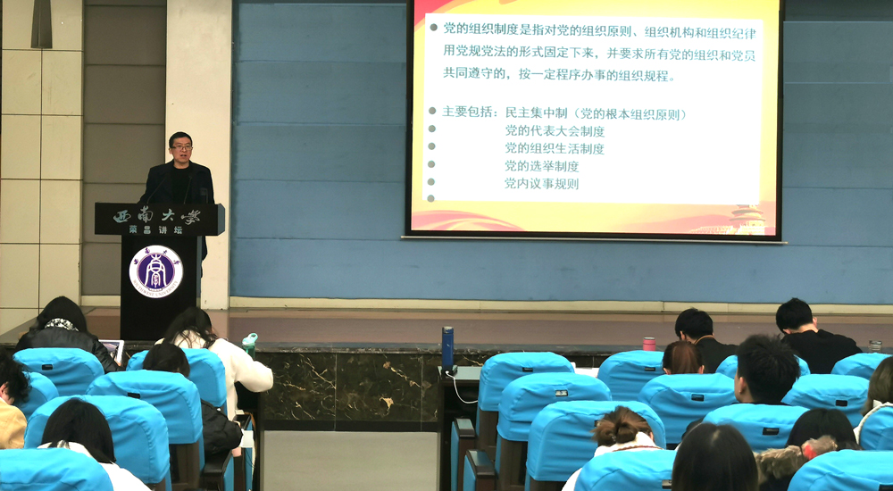 赵中权围绕“中国共产党的组织制度和纪律”主题,深入讲解中国共产党在长期过程中形成的政治纪律,优良作风与基本制度,让同学们深刻了解了党优良作风的深刻性和建设性。