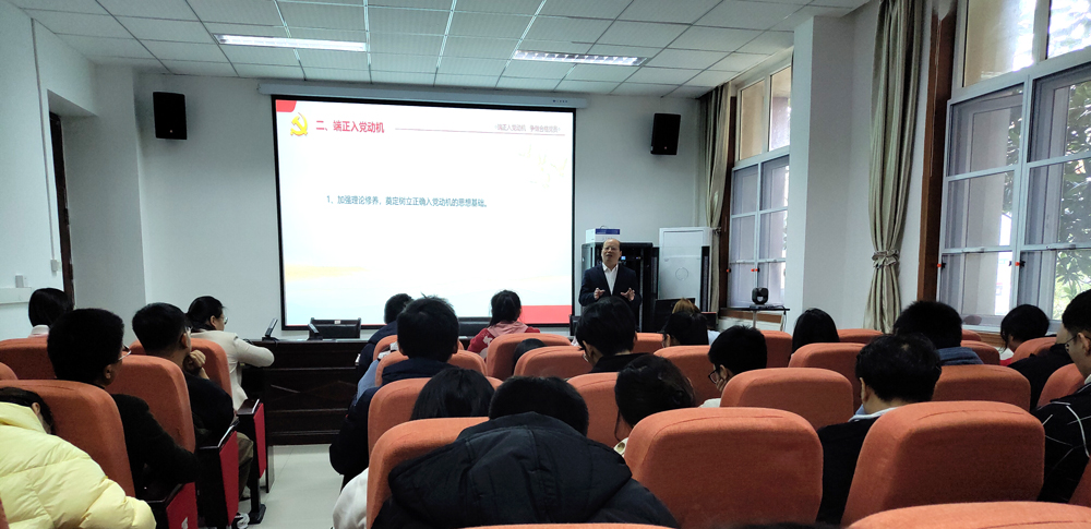 周克勇围绕“端正入党动机,争做合格党员”主题,指出:入党动机是一个人要求入党的内在原因和真实目的,端正入党动机是争取入党的核心问题。号召全体入党积极分子要学习认真、工作踏实肯干、有上进心、乐于奉献。