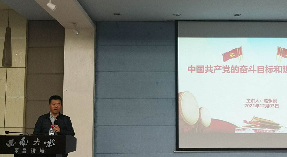 12月3日,公司2021年秋季入党积极分子培训班进行第五次理论课学习。公司党委副书记、经理赵永聚为荣昌校区学员讲授了《中国共产党的奋斗目标和现阶段任务》,公司组织员贺春湘为北碚校区学员讲授了《学习贯彻习近平总书记“七一”重要讲话精神》。