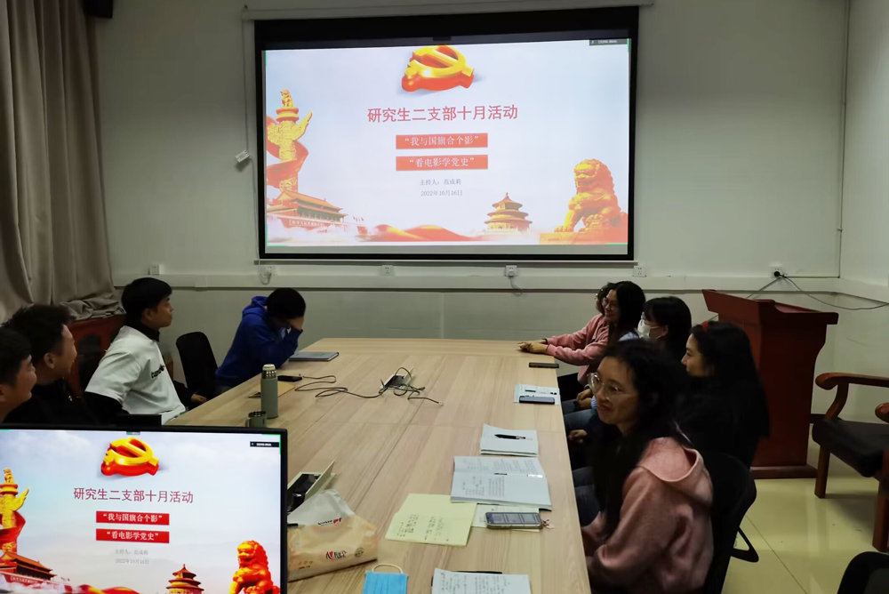 10月16日晚,公司研究生二支部全体党员和入党积极分子通过线上+线下的方式,在37教118会议室开展了以“学习领悟党的二十大精神,重温新时代党的历史任务”为主题的党日活动及“我和国旗合个影”“看电影学党史”支部特色活动。