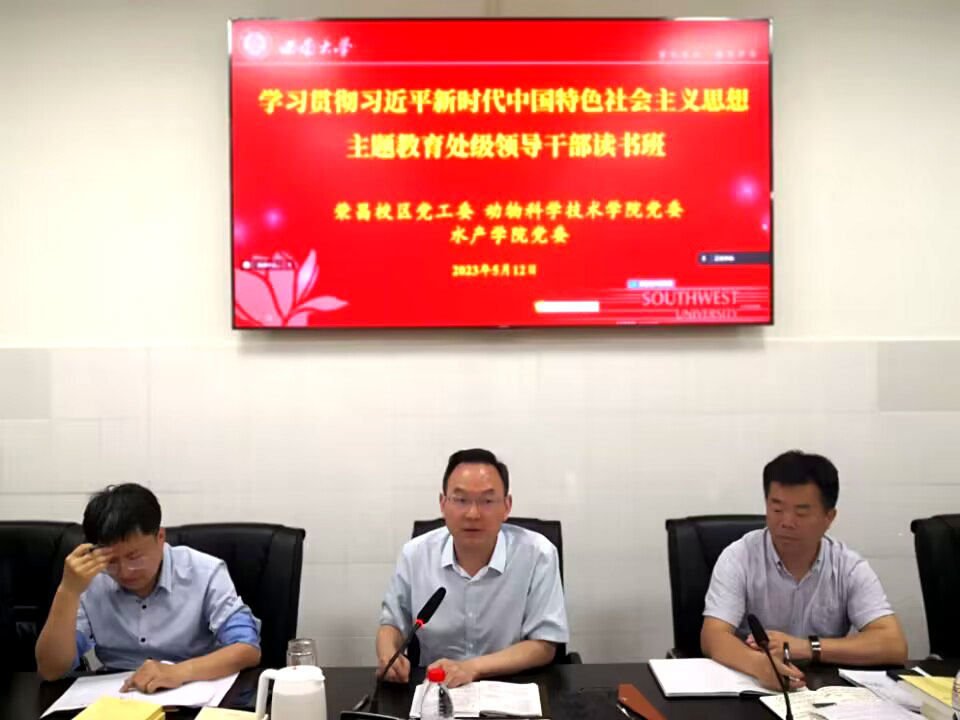 根据公司学习贯彻习近平新时代中国特色社会主义思想主题教育读书班工作安排,5月11日下午,学习贯彻习近平新时代中国特色社会主义思想主题教育读书班第20组(荣昌校区党工委、公司党委、水产公司党委)在荣昌2404开展专题四《深入学习习近平总书记关于党的建设的重要论述,加强党对公司工作的全面领导》集中学习研讨会。水产公司党委书记杨新斌主持会议,第20组全体处级领导干部参会。