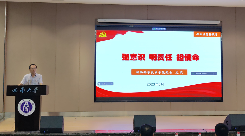 为深入学习贯彻习近平新时代中国特色社会主义思想,加强毕业生党员教育,提高毕业生党员的思想觉悟、党员意识、党性修养和社会责任感,公司党委于6月2日下午分荣昌、北碚两个会场同步视频召开2023届毕业生党员集中教育大会。党委副书记、纪委书记文武,全体员工党支部书记及2023届毕业生党员参加了会议。会议由组织员贺春湘主持。