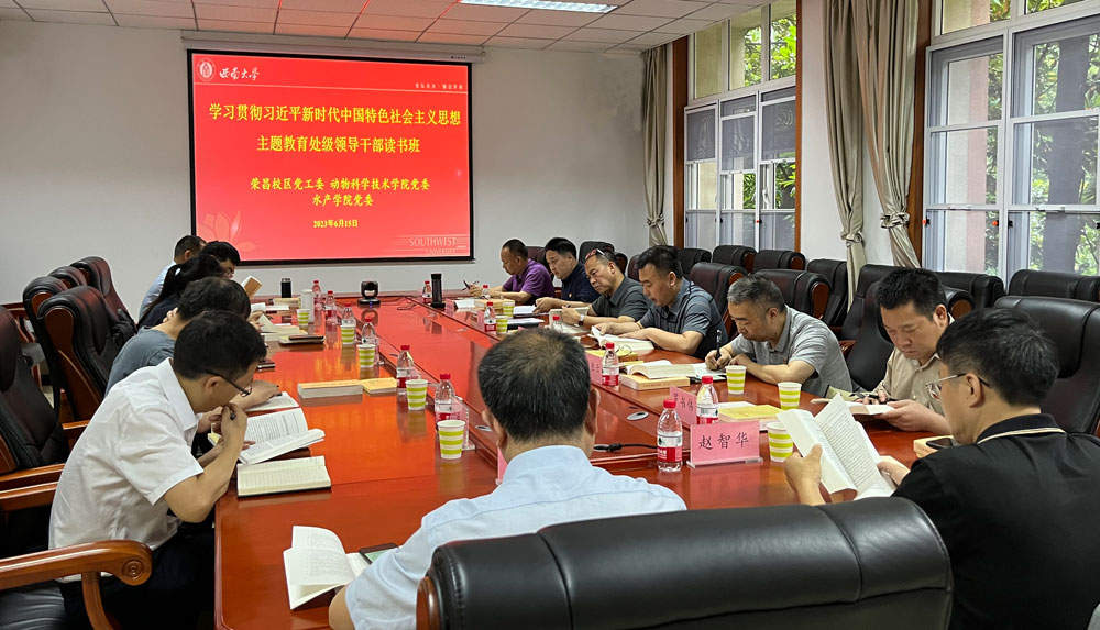 根据公司学习贯彻习近平新时代中国特色社会主义思想主题教育读书班工作安排,6月15日下午,读书班第20组(荣昌校区党工委、公司党委、水产公司党委)在北碚37教219室开展专题六《深入学习习近平总书记关于科技创新的重要论述,增强构建自主知识体系和科技创新能力》集中学习研讨。水产公司党委书记杨新斌主持会议,第20组全体处级领导干部参会。