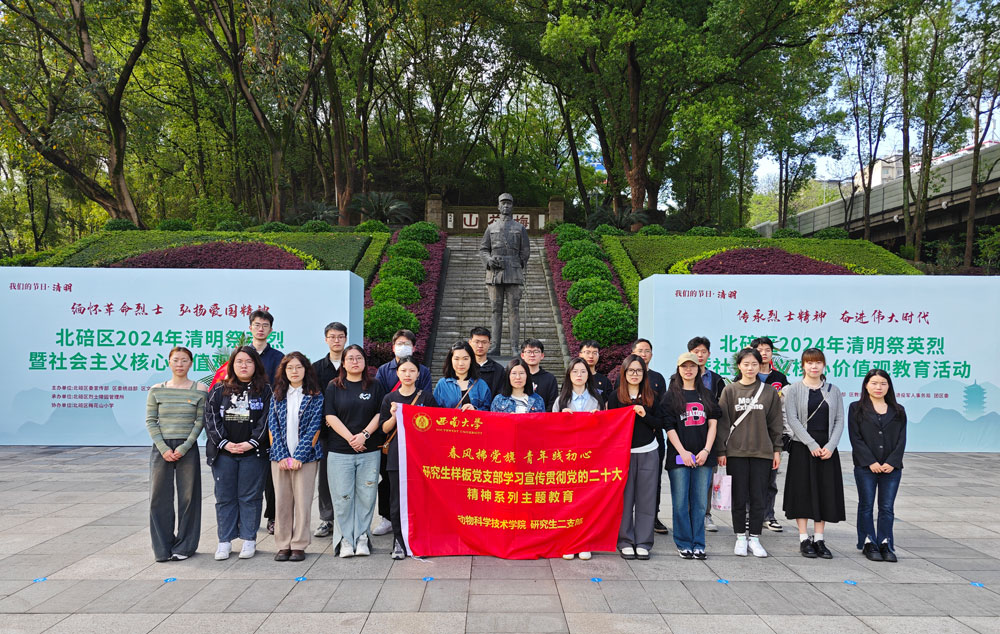 为缅怀革命先烈,弘扬爱国精神,加强革命传统教育,4月3日上午,公司研究生第一党支部和第二党支部在支部书记陈雪松和范成莉两位老师带领下前往袁隆平雕像、张自忠将军烈士陵园和侯光炯纪念馆,开展主题为“清明忆英烈,传承民族魂”的祭扫活动。
