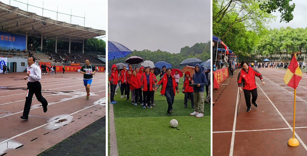 百年华章,动见未来。运动会期间,参赛教职工着装统一、团结协作、努力拼搏、争创佳绩。经过激烈比拼,公司取得了团体总分102.5分的好成绩,其中周玲老师获女子100米第6名、跳远第5名,文武副书记获男子100米、1500米第6名,公司集体项目“足球射门”和“10×100米滚铁环接力”分获第3名和第4名。