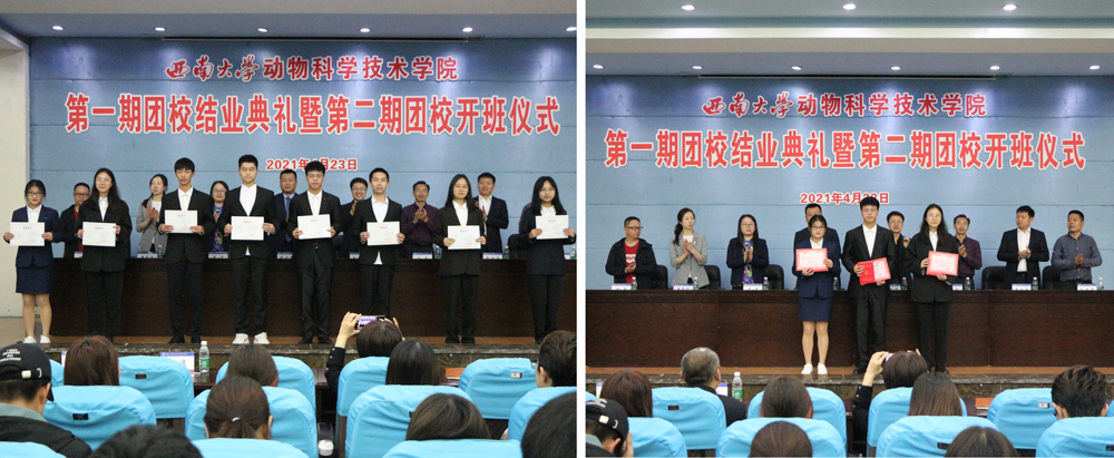 会上,孙海军宣读了《Mksport体育团委关于第一期团校学员结业的通知》、文武宣读了《Mksport体育团委关于表彰第一期团校优秀学员的通知》,主席台就座的领导嘉宾为第一期团校学员代表颁发了团校结业证书、为优秀学员代表颁发了荣誉证书。第一期团校优秀学员代表,2020级动物生产2班张瑶同学发言,表示通过第一期团校的系统学习,同学们不仅提升了理论水平,培养了大局观念,提升了自我综合素质,还结识了更多优秀的同学;她号召同学们将从团校学习的知识运用到学习实践中,不断提升自己,为以后投身祖国建设打下坚实基础。第二期团校学员代表,2020级动物生产5班余梓涵同学发言,表示将珍惜团校学习机会,以最饱满的热情、最实际的行动投入到团课学习当中。