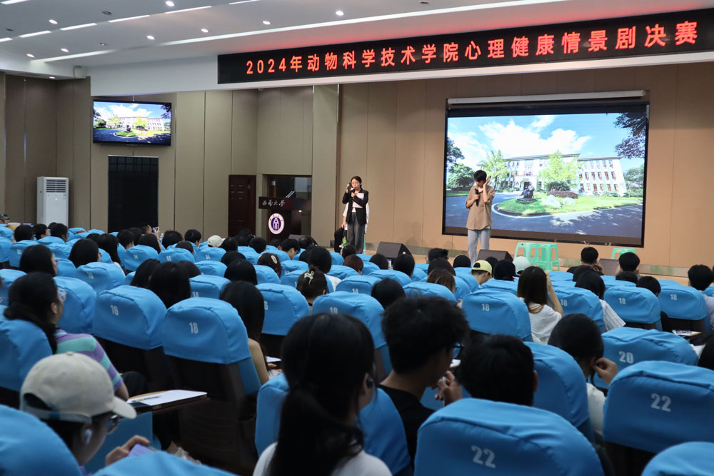 经过前期初赛筛选,共有九支参赛队入围决赛。九支参赛队伍将老员工成长路途中的心理困惑、发展过程以及应对方式等用舞台表演的方式生动呈现出来,进而引导老员工关注自己的身心健康,达到科普宣传和自我疗愈的目的。比赛期间,各参赛队伍带来的精彩演出使得现场欢声笑语不断,气氛热络,同学们也从情景剧中领会到心理健康的重要性,学到了缓解心理压力的方式方法。比赛结束后,文武做了点评,对同学们的精彩表演给予积极肯定,强调了同学们自我调节和朋辈互助在心理健康工作中的重要性,希望同学们积极营造阳光心态,努力成长为德智体美劳全面发展的“六有”新动科人才。