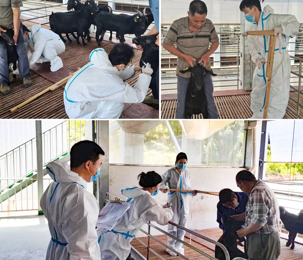 Mksport体育研究团队对大足黑山羊有着深厚的感情与扎实的研究基础,7月25日至27日,实践队结合前期工作,发挥专业优势,分批次前往大足区铁山镇、季家镇、珠溪镇、石马镇开展了科技下乡活动,队员们走进养殖圈舍,服务当地养殖户。长期以来,大足黑山羊饲养为“小而散”的粗放饲养模式,存在着规模小、不科学、不标准、粗生产、产量少、品质差等诸多问题。队员们进入不同农户养殖场中,先后测量上百只大足黑山羊的产肉性状,队员王磊、宋帅飞博士详细展示山羊人工授精技术,通过与养殖人员的深入沟通交流,推广合理饲料配方,宣传疫病防控知识,介绍智能化管理技术和理念,努力打通黑山羊养殖的“最后一公里”,进一步推进大足黑山羊种群品质提升,为全区大足黑山羊产业高质量发展提供力量。