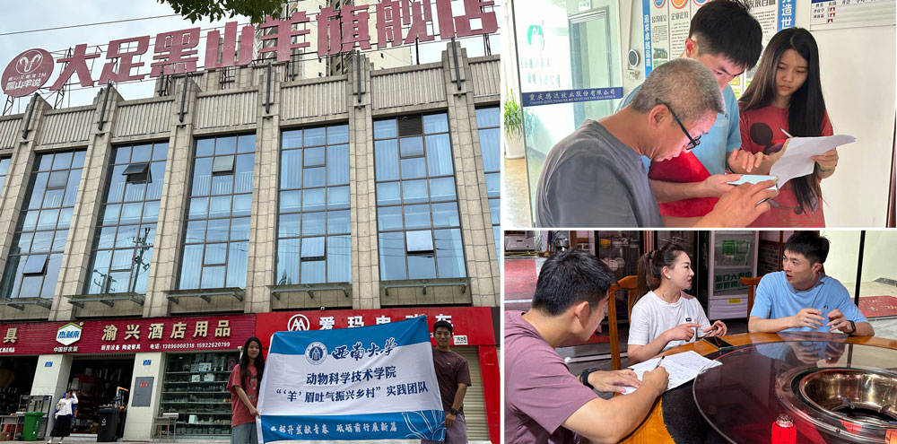 实践队深入开展了大足黑山羊的品牌建设和市场推广调研活动。7月20日至22日,团队成员从大足黑山羊产品销售端面临的切实问题出发,把论文书写在祖国大地上,对大足黑山羊旗舰店、大足黑山羊羊肉零售店、农产品市场个体经营户、黑山羊产品餐饮店进行了面访,从店面格局、消费人群、大足黑山羊羊肉特点、价格分布、经济效益等方面了解大足黑山羊的销售情况。大足黑山羊作为地方特色农产品,其餐饮业的发展有助于保护和传承这一独特的遗传资源。在调研期间队员们发现了阻碍大足黑山羊产品销售的一些问题:季节影响导致一羊难求;价格浮动进而选择竞品;消费习惯无意购买羊肉等。指导老师与队员们就此类问题给出自己的解决方案:“把大足黑山羊与其他大足地区地方产品相结合,打破季节变化的束缚,同时积极探讨大足黑山羊产业从养殖屠宰、深加工、餐品体验、文化宣传等一二三产业融合发展新模式,打造独特的地区名片,提高知名度与产品力”。