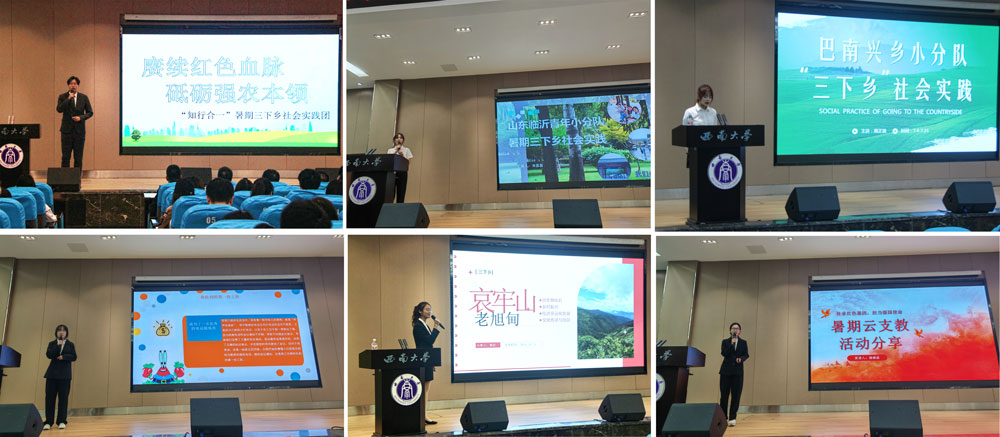 经过前期初选,共7支社会实践小分队和7位社会实践个人入围决赛。比赛中,“知行合一”实践团走访湖南普菲克、江西华裕集团、双胞胎集团,为人生道路找寻清晰方向;山东临沂青年小分队投身文化长河,利用直播与自媒体宣传书圣故居风采,拉紧历史与现实的纽带;巴南兴乡小分队前往干湾村,开展防诈宣传,为国家乡村振兴注入青春动能。个人展示中,蒋雨洁参加“扬帆逐梦计划”,利用亲身体验帮助在校老员工提升就业能力和职业技能;高珍前往云南哀牢山老旭甸化石村了解民情,磨练自身意志和责任担当;杨雅淇参加云支教活动,凭借互联网为山区教育事业献力。