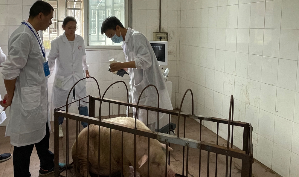 猪的外形评分及活体背膘厚度与眼肌面积测定比赛现场