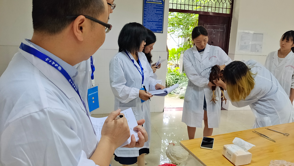 比赛设4个项目,生态畜牧场规划设计、饲料原料快速鉴定与掺假识别-掺假鱼粉的鉴定、鸡的精液采集及品质检测和人工授精、猪的外形评分及活体背膘厚度与眼肌面积测定。各参赛选手在激烈的比赛中沉着应战,发挥了良好的专业技能水平,展现出了动科学子优秀的精神风貌。