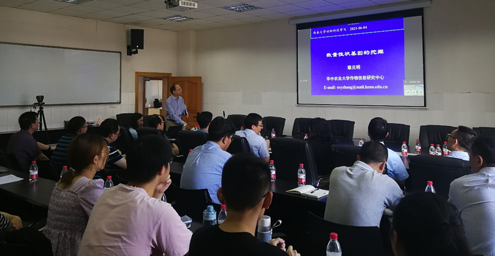 2021年6月4日下午,公司邀请华中农业大学章元明教授作题为“数量性状基因的挖掘”学术报告。会议由赵中权副经理主持,公司相关教师和研究生在2教404(荣昌)和37教223(北碚)参加。