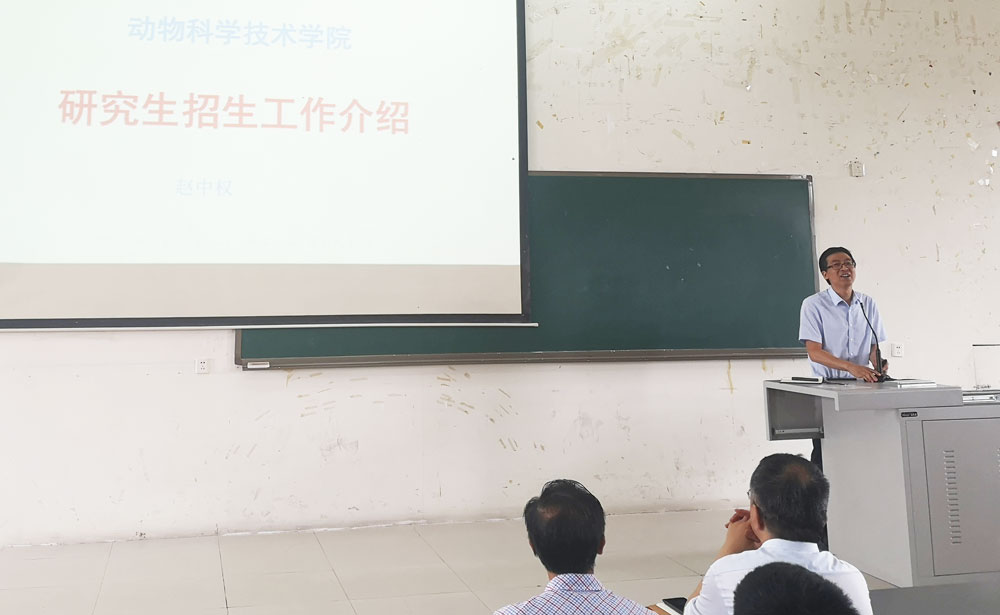 随后,赵中权做了考研、保研培训指导。他首先介绍了本科推免研究生的条件要求、报名程序、资格审查和录取接收等内容。紧接着以动物科学专业员工考研为例,从公司基本情况、学科平台、团队建设及研究生招生等四个方面以长者、导师、领导的身份进行语重心长的亲切交流,就考研院校、学科方向、学业导师选择等方面给出建议,从公司硕士研究生招生录取角度给员工详细讲解了统考硕士研究生招生流程及注意事项。