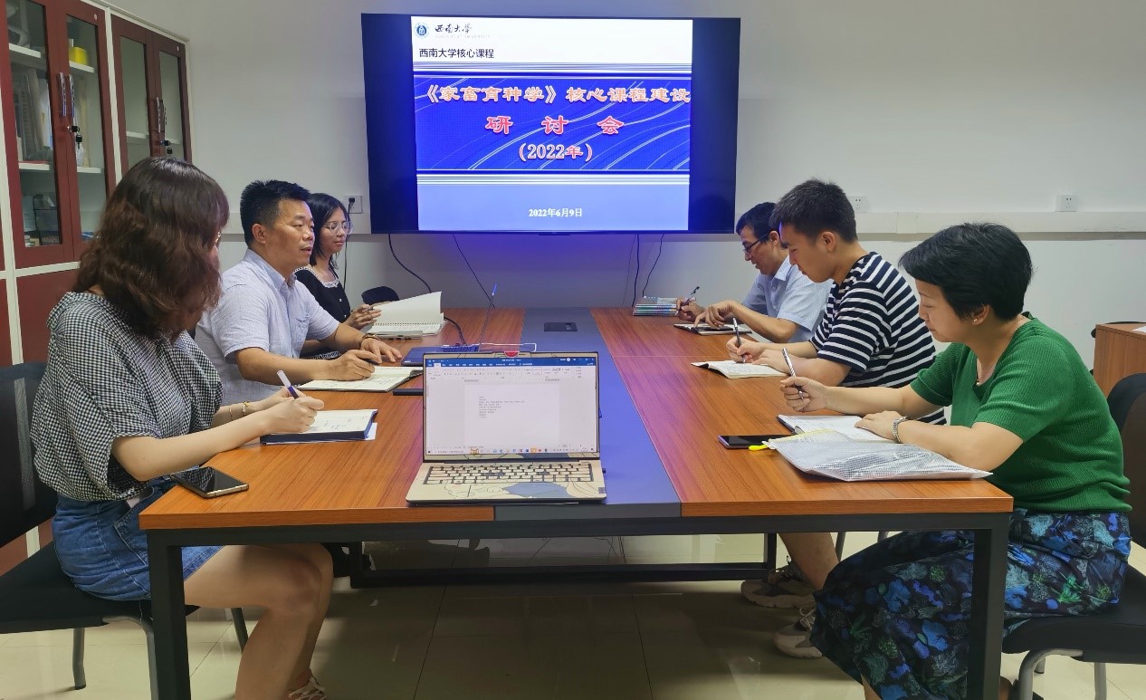 2022年6月9日,家畜育种学课程组在在37教220会议室结合线上线下方式,组织召开了2022年《家畜育种学》核心课程建设研讨会。本次研讨会由公司经理、课程负责人赵永聚教授主持,公司副经理赵中权教授、付树滨博士、周沛老师、孙雅望博士、饶骏老师及4位课程助教参会,并邀请了王识之博士、《细胞生物学》课程负责人邱小燕副教授进行了课程建设经验交流。