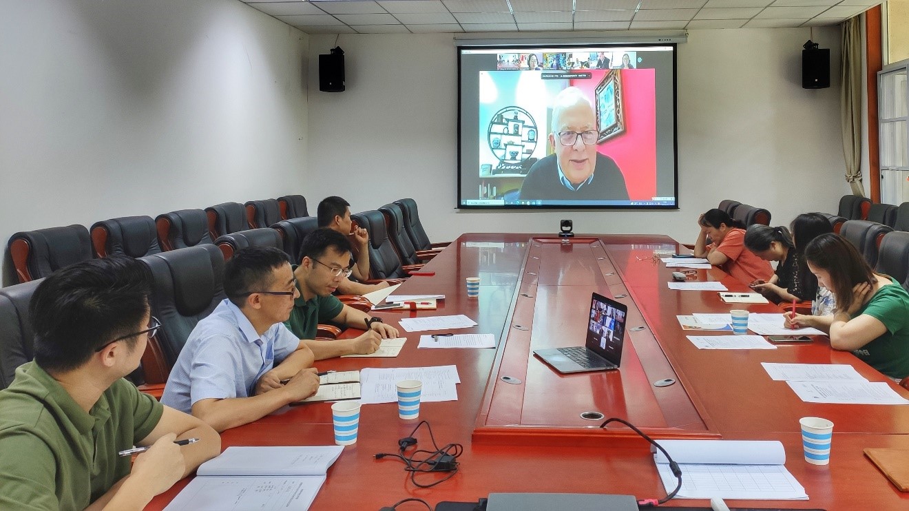 会上,赵中权副经理、Ron White教授和Bruce Calway教授分别致辞,共同回顾了项目自招生以来的运行情况。会议代表围绕2021 – 2022年来开展的《动物生理学》《动物遗传学》《动物营养学》《生物统计与实验设计》共建课程进行自评和讨论。随后,大家就“2+2”项目的员工入学和“3+2”培养模式的协议落实等内容进行了深入交流。最后公司与AEMG机构商谈了暑期教师个人与专业发展(Personal and Professional Development,PPD)培训的落实情况。
