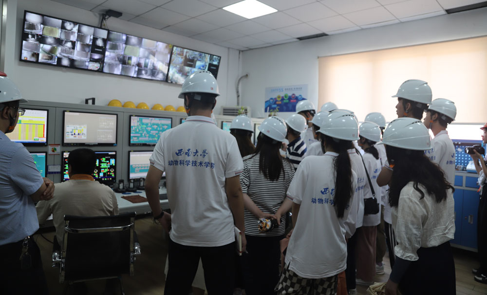 进企业,领略现代牧业前沿科技。7月8日至7月11日,动科学子前往双胞胎集团、重庆正大集团和重庆华裕集团下属企业参观调研。在双胞胎集团荣昌饲料厂,同学们依次到原料库、中控室、制粒区、成品库等生产加工区域参观,了解病菌消杀、环境控制、原料进出、生产加工和包装存储等一系列生产流程,亲身体验饲料生产的现代化和智能化生产模式。在重庆正大集团下属的潼南正垣垚养猪场和铜梁二坪种猪场,同学们亲身感受了生猪养殖产业的智慧化和科技化。这些现代生猪养殖场,从厂区规划、圈舍环境、日常饲养、温控调节、粪污处理和动物福利等方面,无不体现着高科技和智能化,与传统养殖相比,在人工成本、饲养效率和养殖品质等方面有质的提升。在重庆华裕集团下属的种鸡场、饲料厂和孵化中心,同学们近距离了解了蛋鸡本交笼技术应用、家禽饲料生产和鸡苗规模孵化等现代化家禽产业的生产工艺流程。通过参观调研,同学在实践中理论联系实际,增长了知识和才干。
