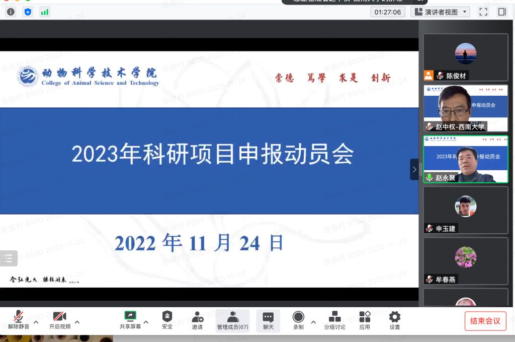 11月25日下午,公司通过线上方式召开2023年科研项目申报动员会。公司党委书记赵智华、经理赵永聚、副经理周克勇及全体专任教师参加会议,会议由副经理赵中权主持。