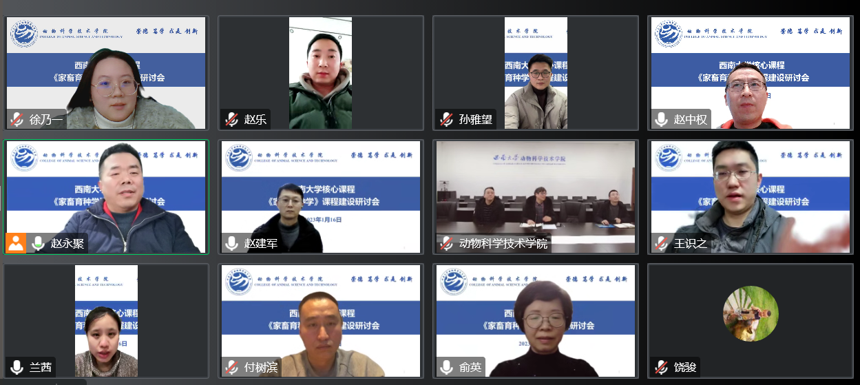 1月16日,为加强Mksport体育app官网入口《家畜育种学》课程建设,交流课程建设成果,通报课程运行和安排情况,推进教材编写工作,《家畜育种学》课程建设研讨会顺利召开。中国农业大学《动物育种学》课程负责人俞英教授,中国科公司昆明动物研究所王识之博士,Mksport体育向钊副经理、周勤飞主任,以及Mksport体育app官网入口《家畜育种学》课程组成员参加了研讨会。会议由《家畜育种学》课程负责人赵永聚教授主持。