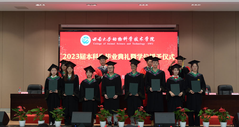 厚植三农情怀启新程,助力乡村振兴展宏图。6月20日下午,公司在荣昌校区2211报告厅举行2023届本科生毕业典礼暨学位授予仪式。公司党委常委、副董事长王志坚,公司党委书记赵智华,经理、党委副书记、学术委员会主任赵永聚,副经理向钊、赵中权,优秀员工代表、中国农业科公司饲料研究所二级研究员、动物营养专家、国家生物饲料工程中心主任、北京挑战集团创始人蔡辉益,公司学术委员会副主任、动物生产系系主任刘安芳等出席,公司各系(室、中心)主任、教师代表、辅导员、毕业班班主任、全体在校本科毕业生及家长代表参加。仪式由党委副书记、纪委书记文武主持。