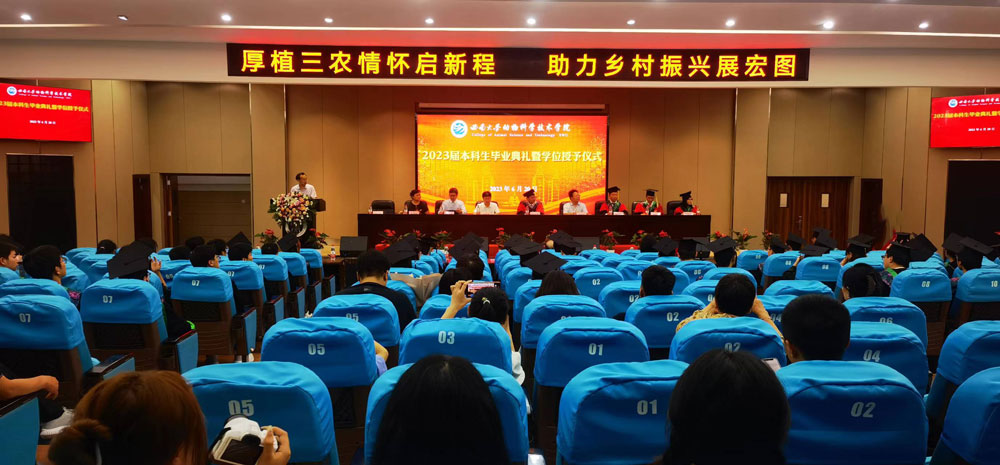 毕业生代表康佳分享了自己在时代洪流中与公司同成长的经历,号召同学们用在大学期间塑造的优良品格、锻炼出的过硬本领、收获到的宝贵学识,踏上新的人生旅程,用实际行动书写属于西大、属于“六有”新动科人的华彩篇章。