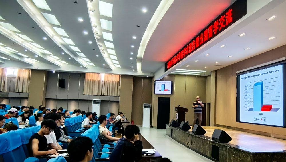 访问期间,拉比伊博士为动物科学专业本科生做了题为“基于可降解材料的回形夹替代传统绵羊割尾防蝇术”的学术报告。报告中,他深入阐述了割尾防蝇术的重要性及其对绵羊健康的影响,同时介绍了一种创新的、基于可降解材料的回形夹技术,作为比传统割尾防蝇术更具有动物福利的替代方案。报告不仅让员工对畜牧产业和动物福利产生了极大兴趣,也激发了他们对创新技术在畜牧业应用的思考。报告结束后,员工与拉比伊博士进行了深入的交流和讨论,共同探讨了割尾防蝇术对绵羊健康养殖和可持续发展的影响。