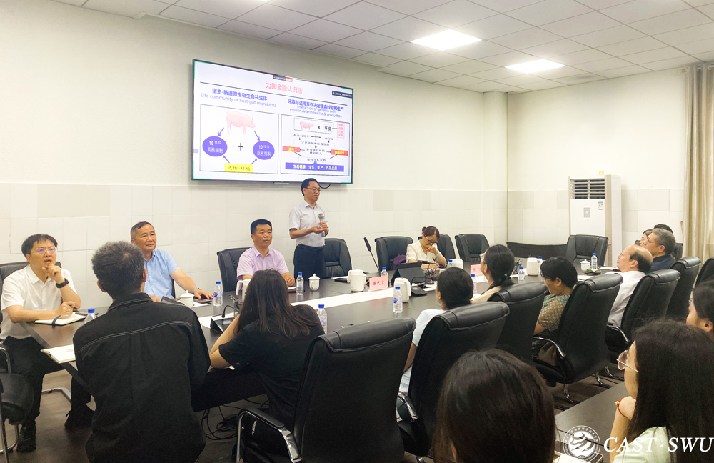 5月27日,我国猪营养学权威专家、四川农业大学陈代文教授携团队核心成员余冰教授应邀来访进行学术交流。陈代文教授以“动物营养与饲料科学科技现状与未来创新”为题作专题学术报告,报告由经理赵永聚主持。