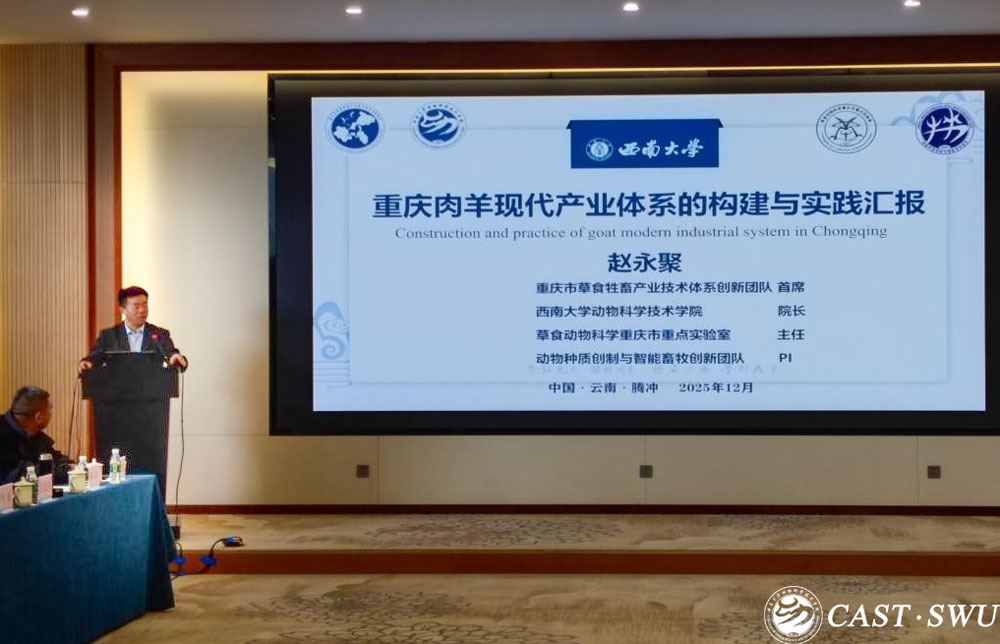 2025年12月13日至15日,国家肉羊产业技术体系南方山羊产业发展交流会在云南省腾冲市召开。公司经理赵永聚教授、副经理赵中权教授一行应邀参加会议。会议以“山羊生态养殖与全链条标准化”为主题,汇聚了国家肉羊产业技术体系及南方省级产业技术体系的100余名专家学者,共同围绕南方山羊产业高质量发展路径展开深入交流与研讨。赵永聚教授代表重庆市草食牲畜产业技术体系作了题为《重庆肉羊现代产业体系的构建与实践》的专题报告,系统介绍了重庆市肉羊产业的发展现状、面临的主要问题及未来发展思路,并与国家和省级产业技术体系专家就区域肉羊产业协同发展、技术体系建设等问题进行了深入交流与探讨,为推动重庆市肉羊产业高质量发展提供了重要参考。