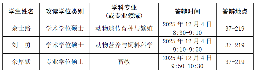 公司2025年秋季学期硕士研究生学位论文答辩于2025年12月4日进行,现予以公告,具体安排如下。