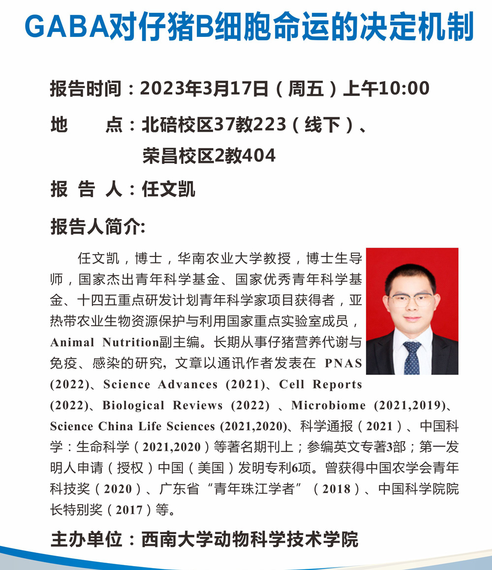 学术报告-GABA对仔猪B细胞命运的决定机制