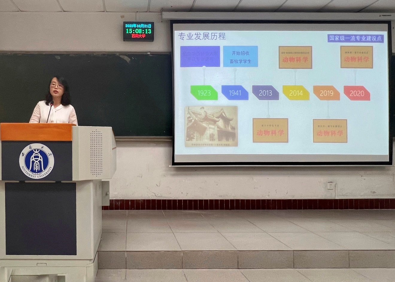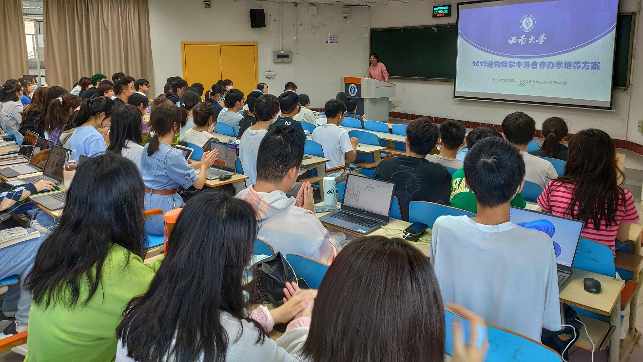 介绍会上杨游老师根据动物科学专业特色详细为新生介绍了中外合作办学培养方案;孙雅望老师结合自己的留学经历讲解了动物科学出国留学项目等内容。会后许多员工均表示出对动物科学中外合作办学的出国留学项目有浓厚的兴趣,同时杨游、孙雅望等在场老师均为同学提出的学费、申请2+2和3+2的条件等问题进行了一一解答。