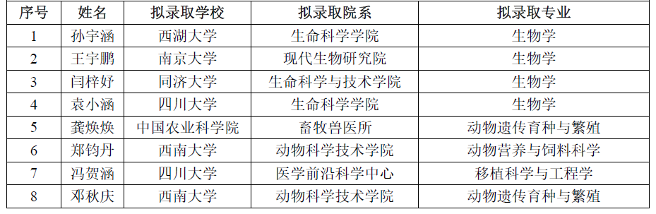 项目2024届本科生共80人,目前已有8人获得硕士研究生推免资格;另有3人参加2+2模式并获得JCU荣誉学位,6人参加3+2模式在JCU攻读硕士学位。在8名推免生中,1人被西湖大学录取硕博连读,4人被985高校录取(见名单)。