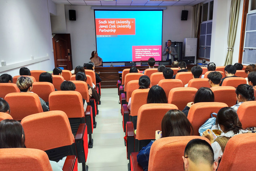 随后,Ronald White教授为2022级、2023级动物科学专业中外合作办学项目的员工进行宣讲。宣讲会上,他为员工详细介绍了JCU的教育理念、学术资源以及职工活的各个方面。强调了选择JCU的多重优势,包括其在动物科学领域的专业排名、国家级研究中心和项目,以及公司对国际伙伴关系的重视。他还特别提到“2+2”和“3+2”留学项目的结构和优势,以及通过这些项目在未来职业发展上的潜力。JCU国际项目协调员Allison Paley博士通过精彩的《A Journey to Academic Life》幻灯片展示,向员工阐述了她自己从员工到科学家的成长故事、从美国到澳大利亚留学并定居的心路历程。她还分享了学习科研、博士后研究项目,以及微塑料对珊瑚的影响等研究话题。