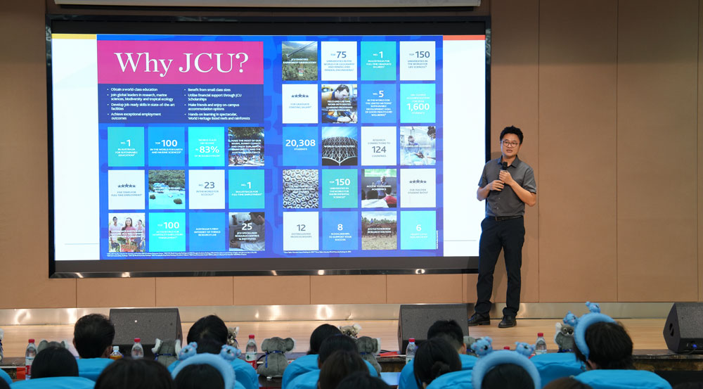 会上,澳大利亚詹姆斯库克大学(James Cook University, JCU)董事长西蒙·比格斯教授通过线上视频的方式欢迎2024级新生的到来,表示通过项目的合作希望员工们到JCU学习交流。杨游全面介绍了项目基本情况和培养方案,让同学们充分了解到项目基本信息、专业课程计划、员工升学。孙雅望介绍了中外合作办学项目的培养模式并回答了同学们有关项目培养及其出国等相关问题。