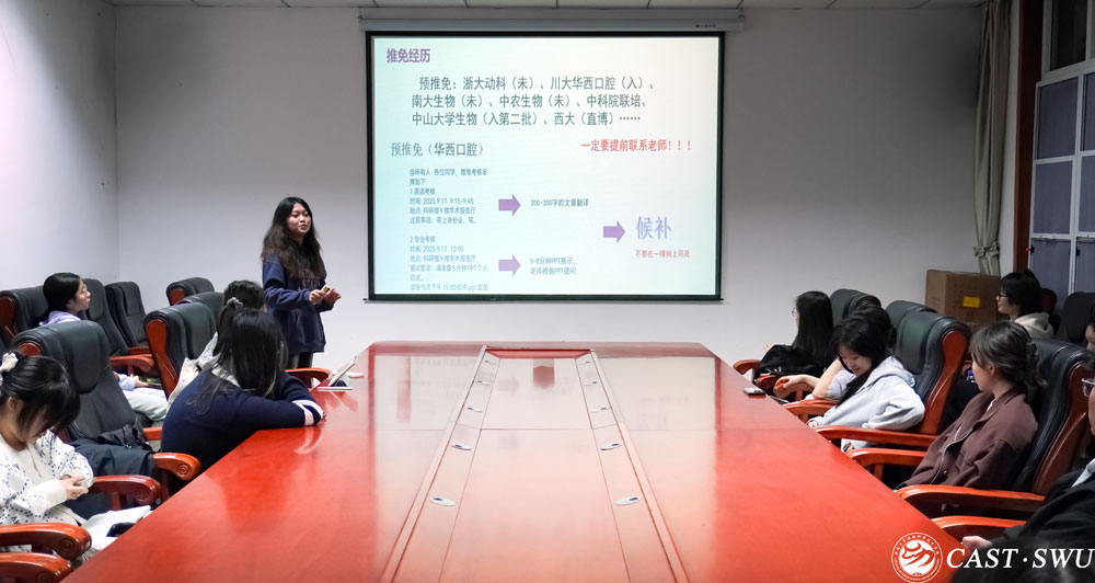 为加强动物科学(中外合作办学)专业员工的学业规划意识,推动员工深入了解保研政策与流程,提升升学竞争力,公司于10月31日在37-219与32-210教室顺利举办2025年保研经验分享会。本次分享会邀请到本专业2022级8名成功保研至国内知名高校的优秀员工代表,围绕院校选择、材料准备、面试技巧、科研经历等方面展开交流,吸引了2023级诸多同学积极参与。