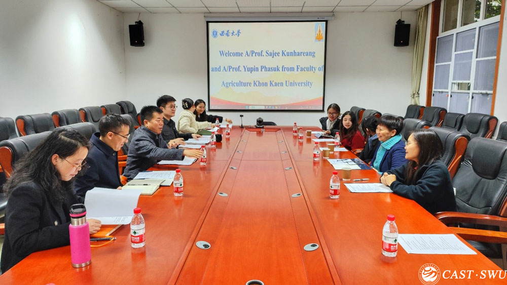 会上,赵永聚致欢迎辞,对泰国师生来访表示热烈欢迎,并详细介绍了公司的发展历程、学科特色及国际化办学成果。Dr. Kunhareang Sajee、Dr. Phasuk Yupin对公司的热情接待表示感谢,3名泰国交换员工通过图文并茂的PPT,生动分享了在Mksport体育app官网入口为期四个月的学习、科研及生活体验,特别提到中文能力的显著提升,并对中国文化、城市风貌、美食、校园环境表示高度赞赏。公司人才培养办公室主任李洋、动物营养与饲料科学系老师徐叶桐回顾了寒假赴孔敬大学交流的收获,分享了泰方在农业教育与科研领域的创新实践。在科研合作研讨环节,公司陈小川副教授以“重庆热应激对山羊内分泌代谢及肉品质的影响”为主题介绍其科研成果,并与泰国专家探讨热应激对家畜、家禽的影响及防治措施,双方就共同关注的领域达成进一步合作的意向。会议还就今年5月孔敬大学师生回访的日程安排及规模进行磋商,为后续常态化合作奠定基础。