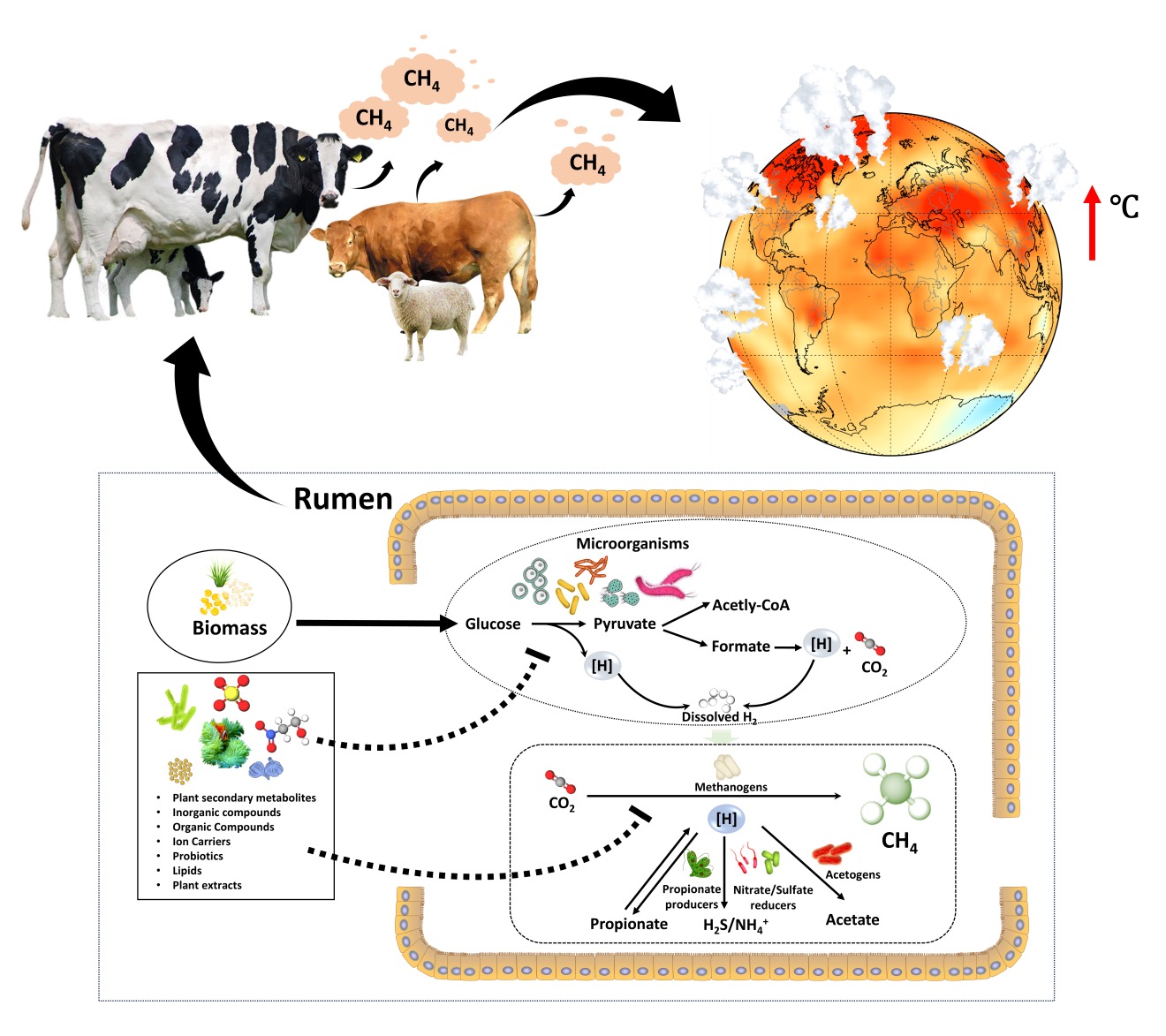 农业生产尤其是反刍动物养殖产生的甲烷排放已成为温室气体的重要来源,甲烷排放不仅导致环境问题,还造成反刍动物饲料能量2%-12%的损失,直接影响畜牧业经济效益。